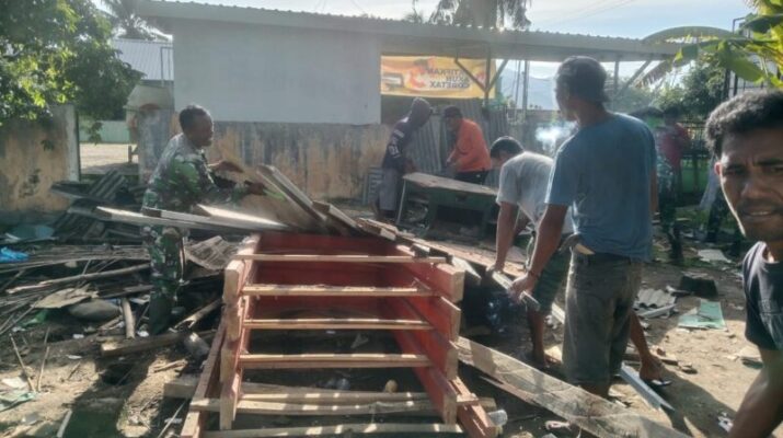 Babinsa Hadir di Tengah Bencana, Rumah Warga Menala Dibantu Perbaiki