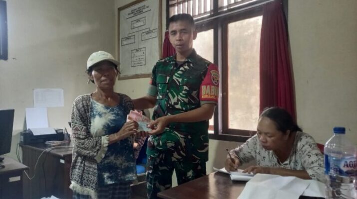 Klungkung,- Hadir ditengah masyarakat untuk memastikan keamanan dan kelancaran kegiatan, Babinsa Klumpu Koramil 1610-04/Nusa Penida Kopka Kadek Parta melaksanakan pengawasan dan pendampingan penyaluran Bantuan Langsung Tunai Dana Desa ( BLT DD ), Kamis ( 27/11/25 ).