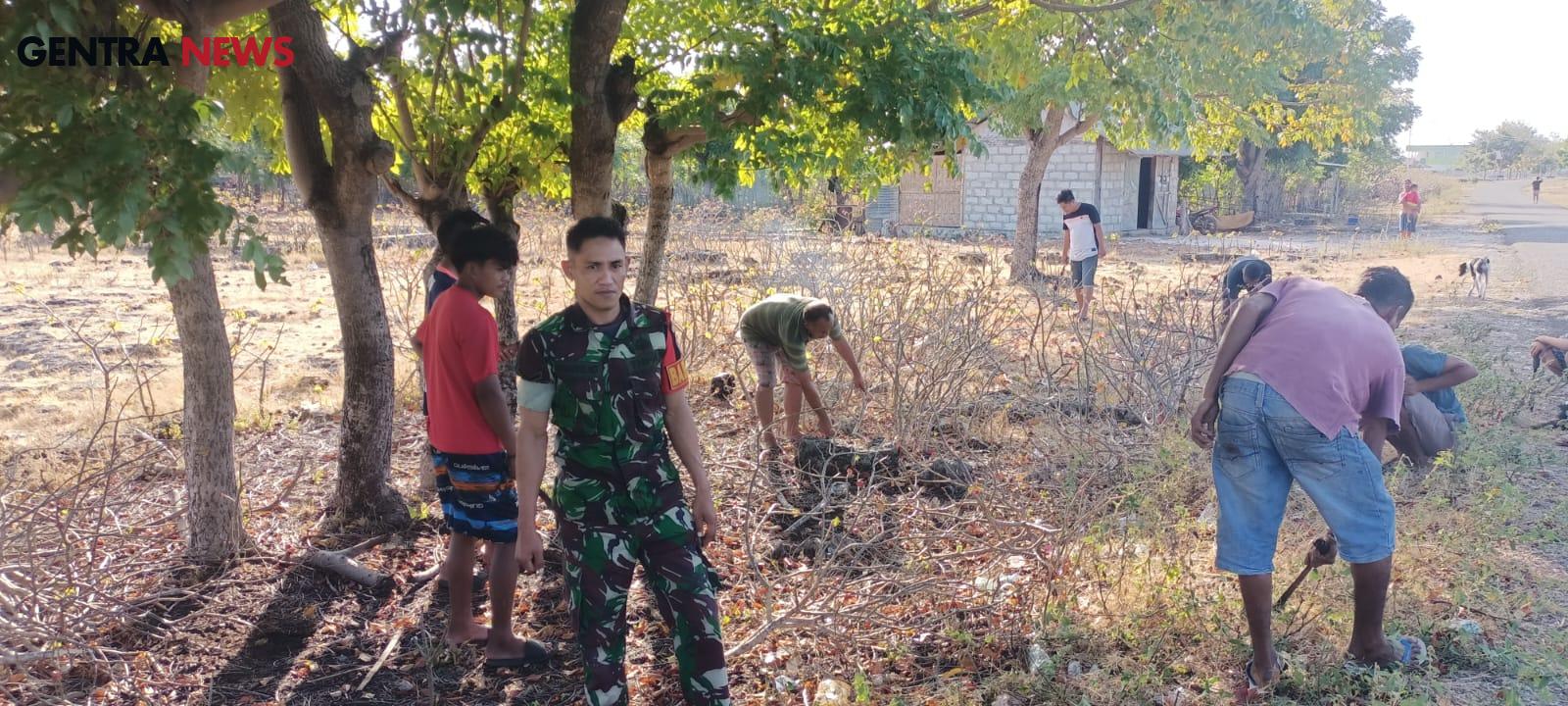 Babinsa Koramil 05/Kota Waingapu Bersama Masyarakat Laksanakan Kerja Bakti Pembersihan Akses Jalan