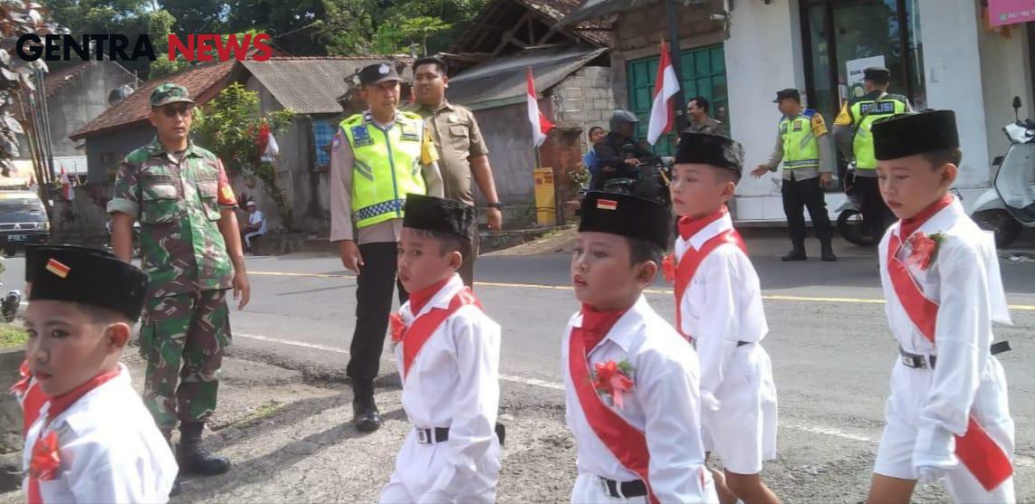 Personil Polsek Abang Melaksanakan Giat Pengamanan Gerak Jalan di Kecamatan Abang dalam rangka memperingati HUT RI ke-79