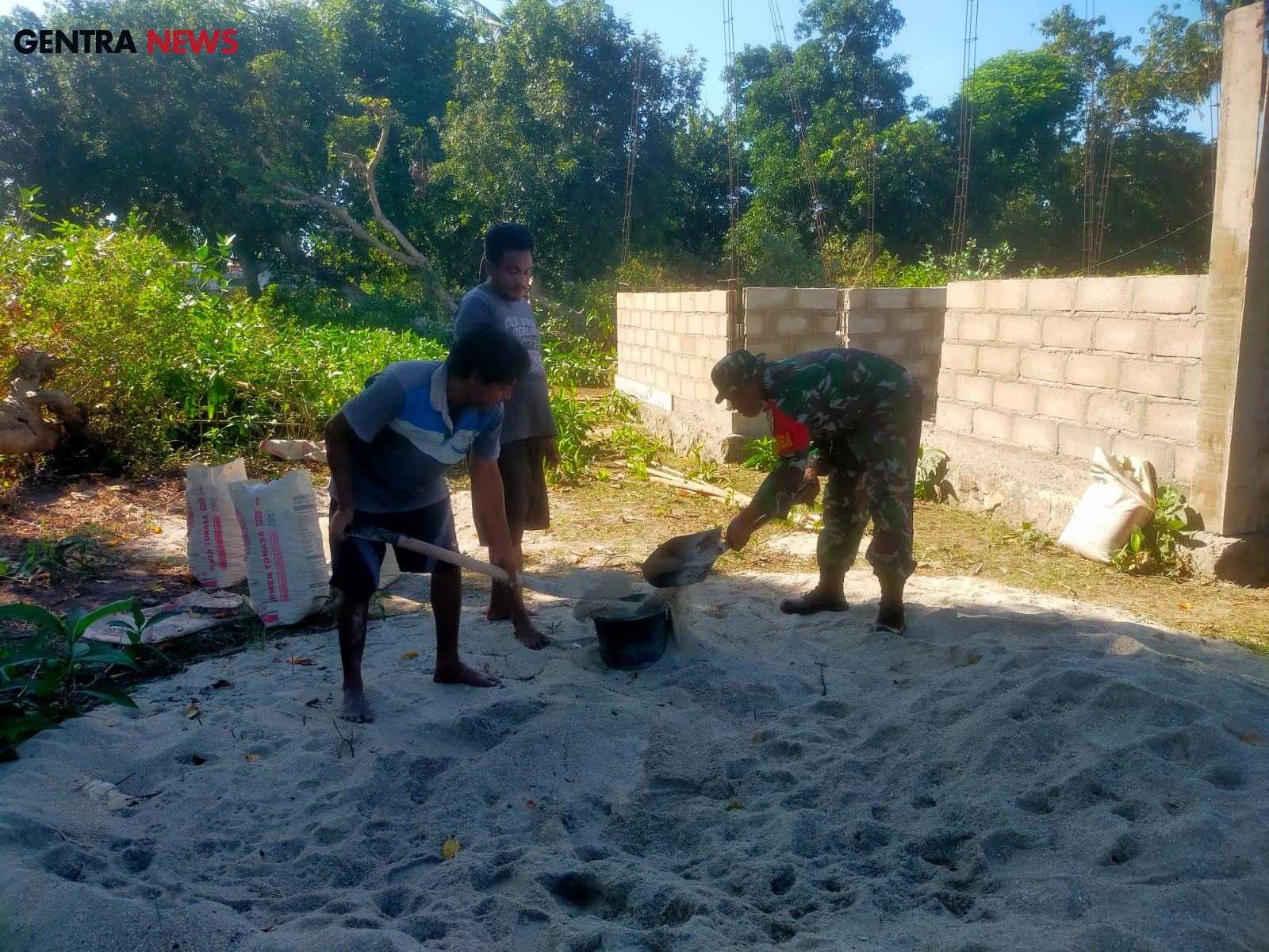 Tanamkan Jiwa Gotong Royong Babinsa Pahunga Lodu Luangkan Waktu Bantu Warga Bangun Rumah
