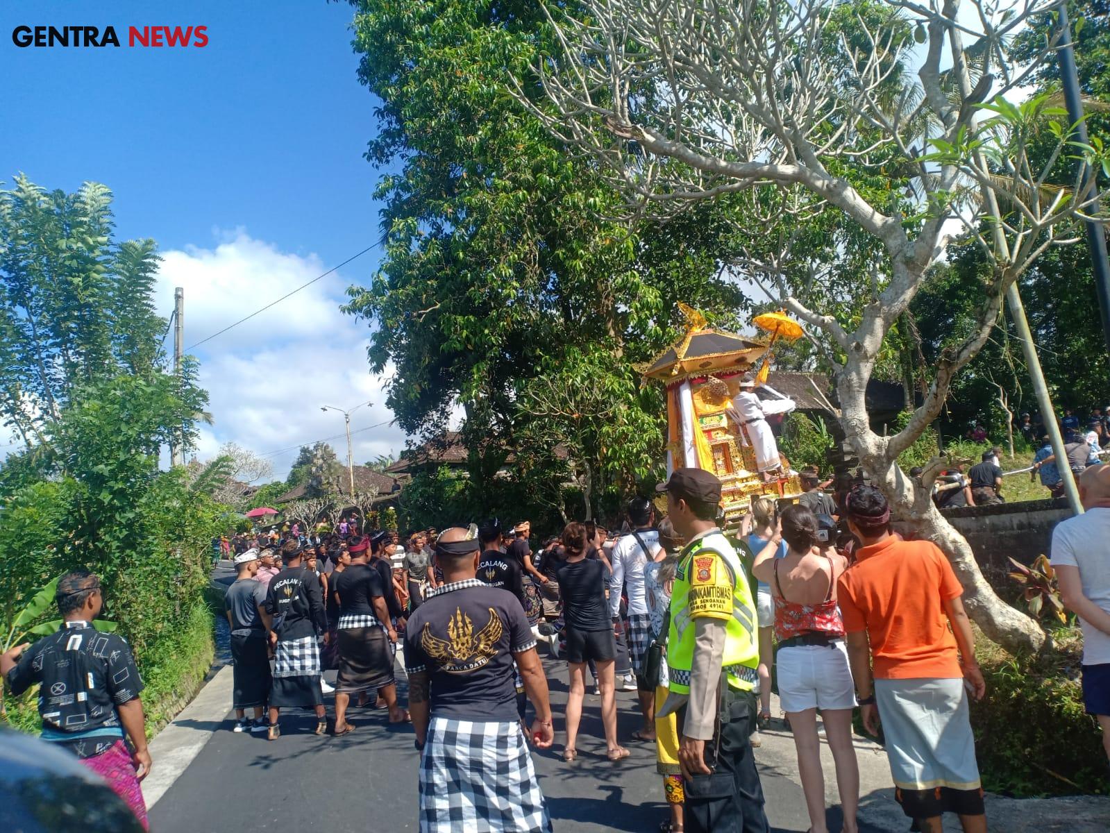 Penebel, Minggu 01 September 2024 Babinkamtibmas Desa Senganan bersinergi dengan Pecalang Desa Adat Bugbugan melaksanakan Pengamanan Masyarakat dalam rangka Upacara Pitra Yadnya (Ngaben). Bhabinkamtibmas