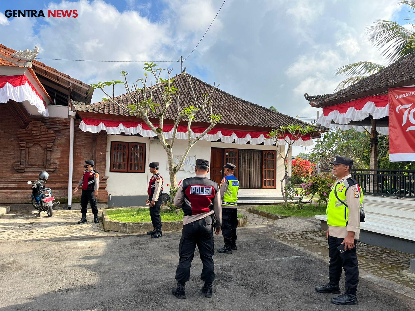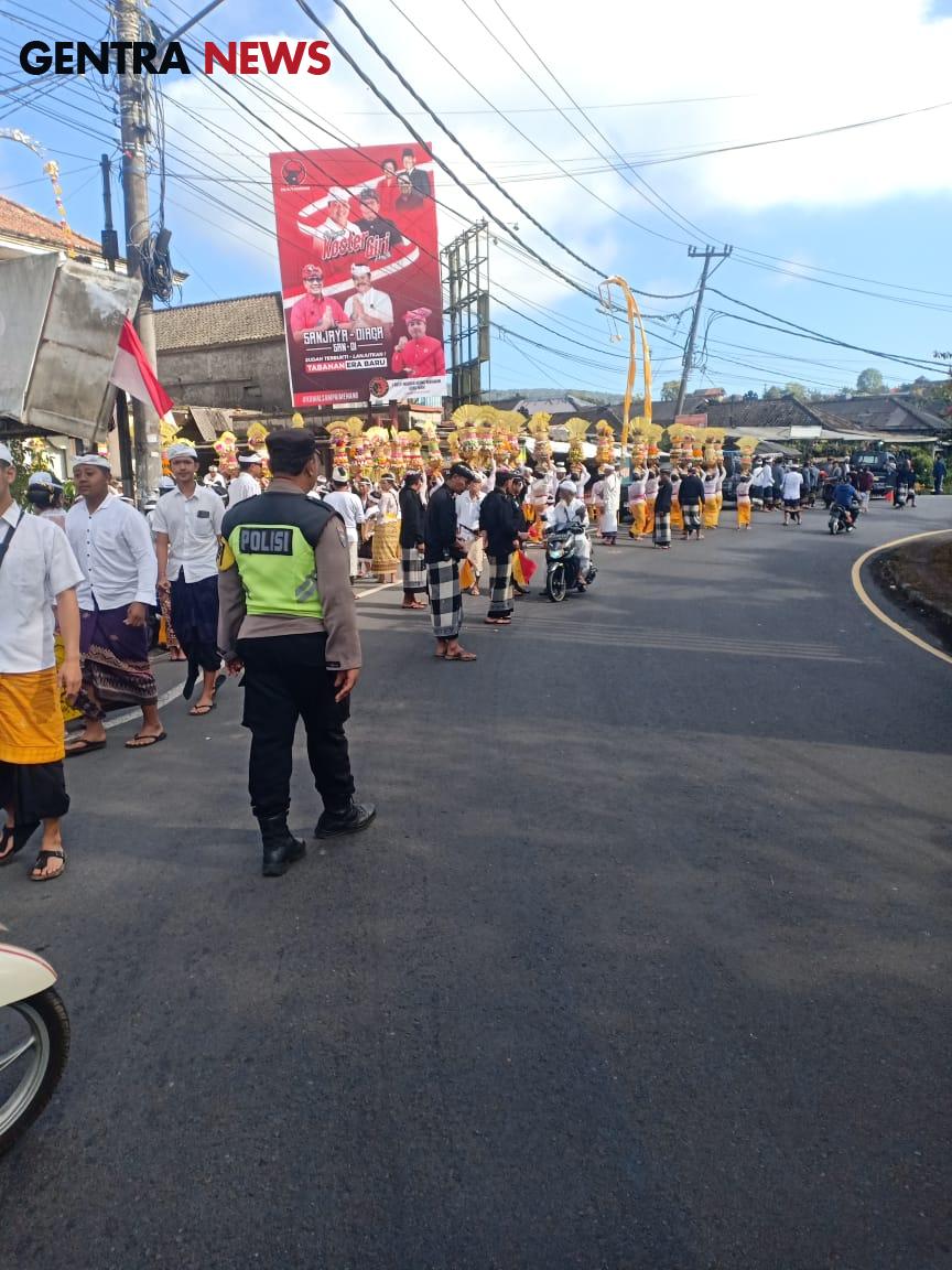 Bhabinkamtibmas Desa Candikuning Amankan Rangkaian Upacara Pemelaspasan Balai Banjar dan Pura Melanting