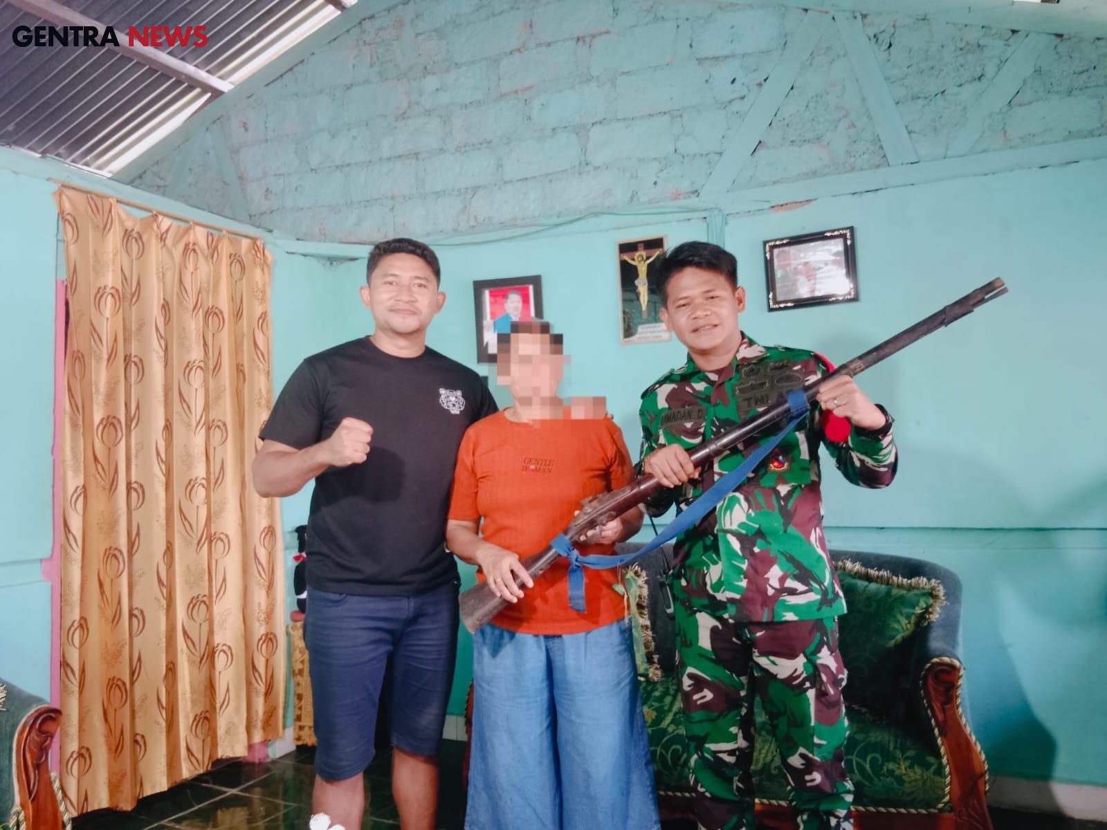 Gentra News NTT – Sallu, Melalui Komsos dan pendekatan secara Humanis, Mako Satgas Yonkav 6/Naga Karimata sukses mendapatkan satu pucuk senjata rakitan jenis Flintlock
