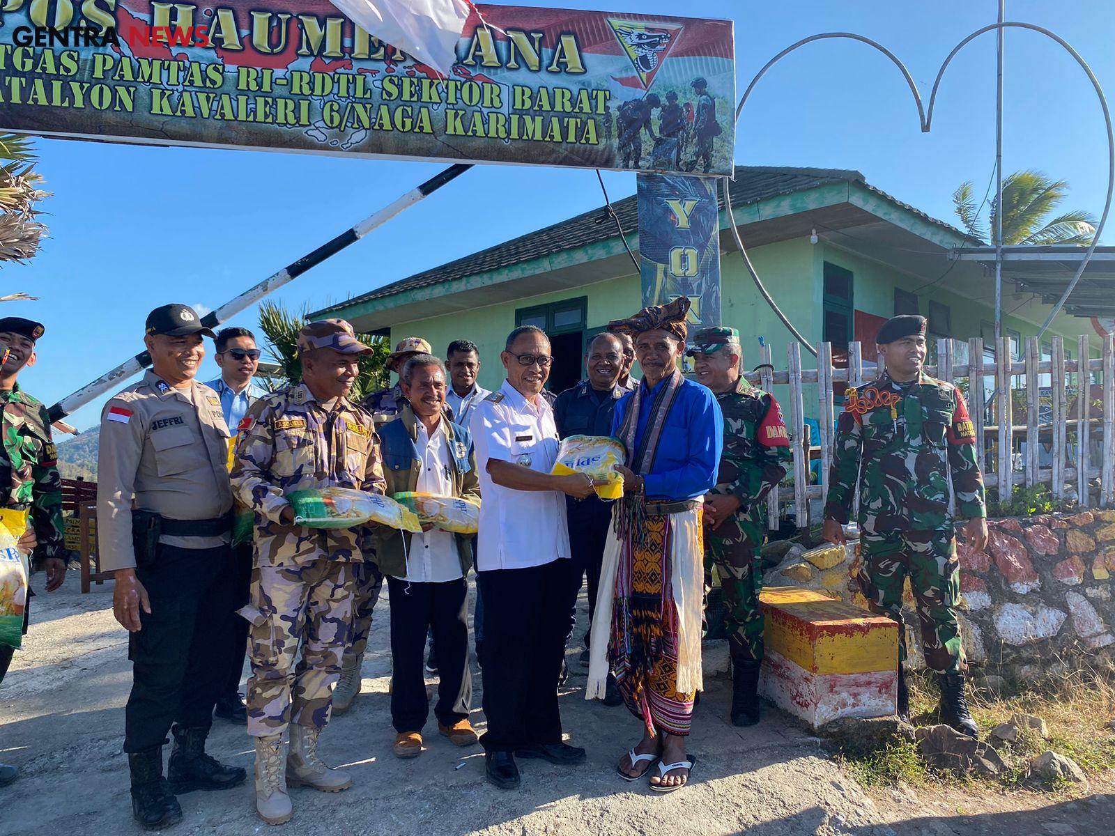 Gentra News NTT – Haumeniana, Bentuk kepedulian kepada Masyarakat Perbatasan, Pos Haumeniana Satgas Yonkav 6/Naga Karimata laksanakan kegiatan berbagi sembako kepada Masyarakat yang ada
