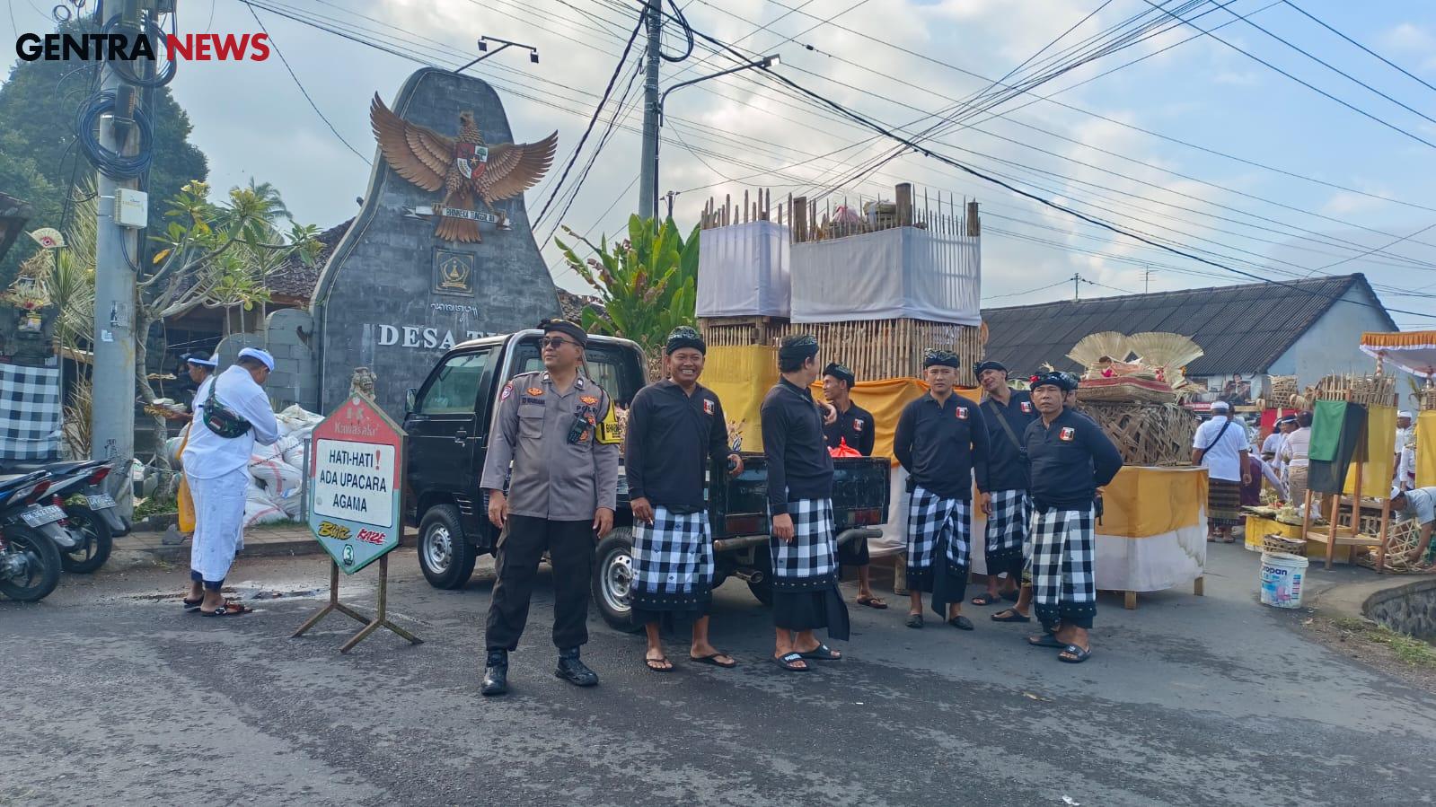 Pelayanan Bhabinkamtibmas Desa Tua Bersinergi Dengan Babinsa dan Pecalang Pengamanan Upacara Keagamaan