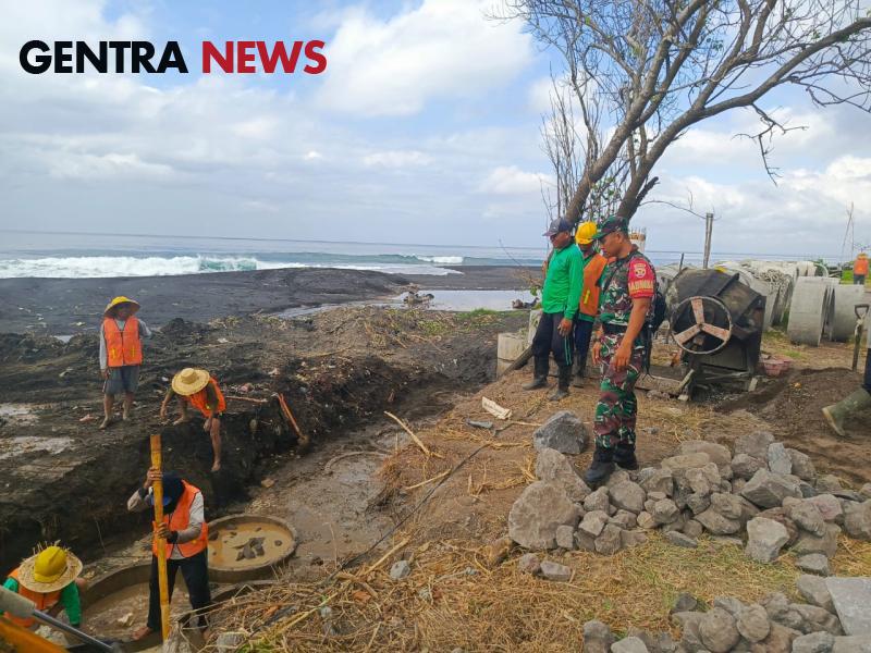 Monitoring Pembangunan Senderan Surfing Point, Babinsa Jumpai Ingatkan Faktor Keamanan