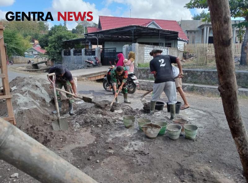 Gentra News NTB – Dompu, Wujud kebersamaan dan meningkatkan semangat gotong royong, Babinsa Koramil 01/Dompu, Kodim 1614/Dompu, Serda Aksar melaksanakan karya bakti membantu warga