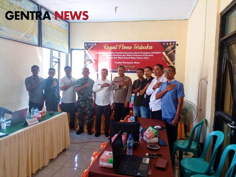 Gentra News NTB – Wawo_Bima, Jelang Pilkada di wilayah teritorial Koramil 1608-06/Wawo, Kapten Inf. Tohir YP selaku Danramil 1608-06/Wawo, menghadiri rapat pleno terbuka rekapitulasi