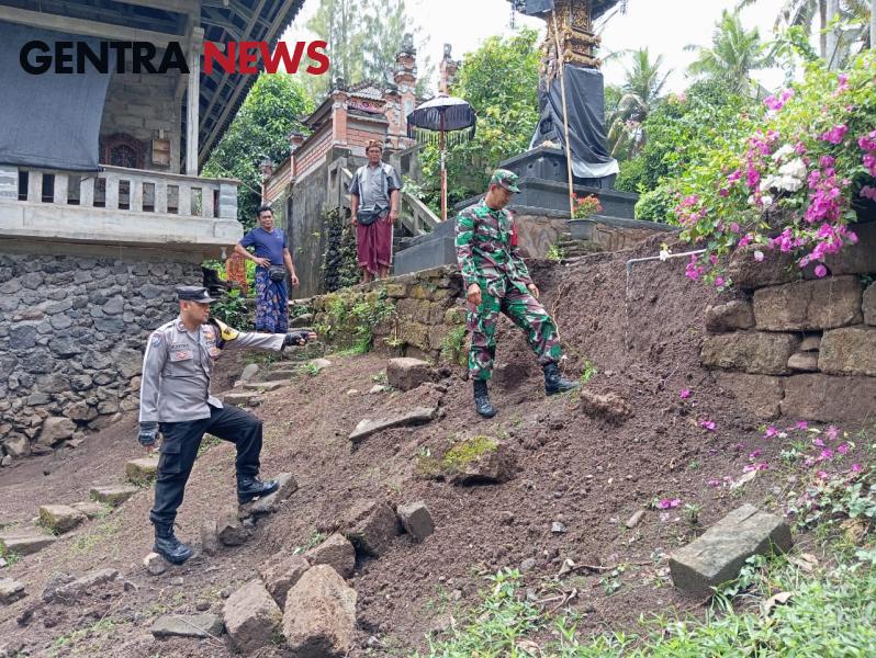 Bhabinkamtibmas Desa Lumbung Sambang / Dds dan Atensi Halaman Rumah Warga yg Mengalami Longsor di Br. Dinas Pengreregan Kelod