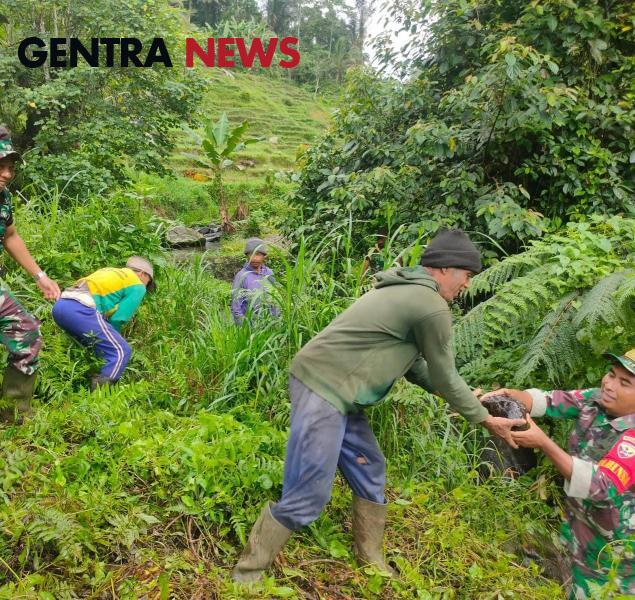 Siap Membangun Pompa Hidram, Koptu Katanga Ndamung Bahu Membahu Bersama Warga Desa Sangketan Membersihkan Area Sumber Air