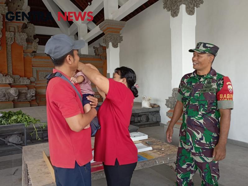 GIANYAR – Babinsa Pejeng Ramil 1616-03/Tampaksiring Serka I Wayan Riasa melaksanakan kegiatan pemantauan dan pendampingan Posyandu Balita yang dilaksanakan oleh Petugas Puskesmas Tampaksiring II
