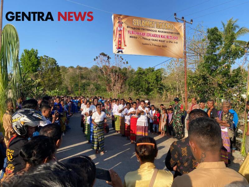 Belu – Pos Asulait Satgas Pamtas RI-RDTL Sektor Timur Yonif 741/GN turut membantu masyarakat dalam penjemputan imam baru Pastor Eduardus Mau Buti,SVD bertempat di
