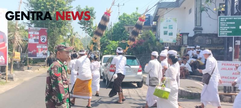 Gentra News Bali – Klungkung, Memberikan dedikasi dan pelayanan terbaik bagi wilayah binaannya, Babinsa Aan Koptu Sang Putu Yusdianta melaksanakan pengamanan upacara ngulapin dan