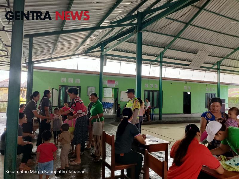 Polda Bali-Polres Tabanan-Polsek Marga, berbaur dan melekat dengan warga masyarakat di desa binaannya di setiap kegiatan baik bersifat adat maupun kedinasan termasuk kegiatan Imunisasi