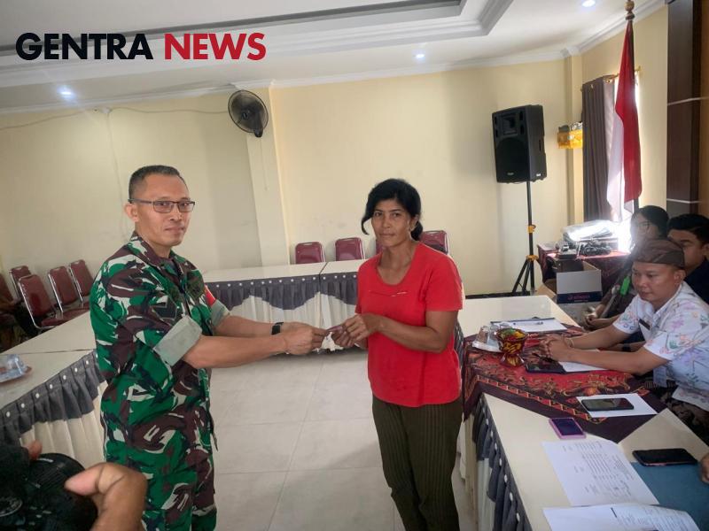 Klungkung,- Bintara Desa ( Babinsa ) Timuhun Serda Kadek Dwi Awan bersinergi bersama Bhabinkamtibmas melaksanakan monitoring dan pendampingan penyaluran Bantuan Sosial ( Bansos )