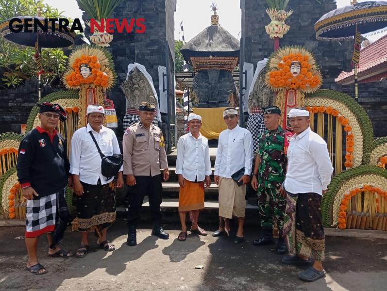 Babinsa dan Babinkamtibmas Bersinergi Pengamanan Upacara Dewa Yadnya Piodalan di Pura Desa Lan Puseh