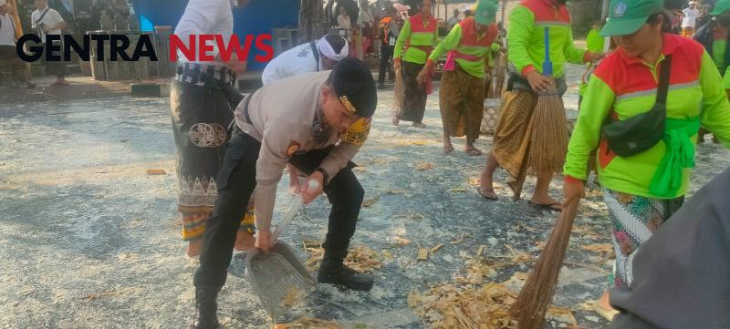 Aksi Gercep AKP Sudhira, Bantu Petugas DLHK Badung Bersihkan Jalan Raya Kapal