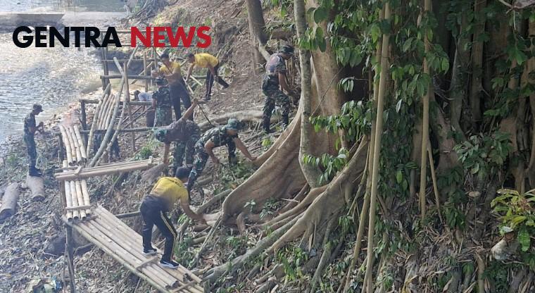 Peduli Lingkungan Kapolsek Marga Bersama Koramil Marga Dan Yayasan Bumi Nusantara Juga Masyarakat Bersihkan Sampah Plastik