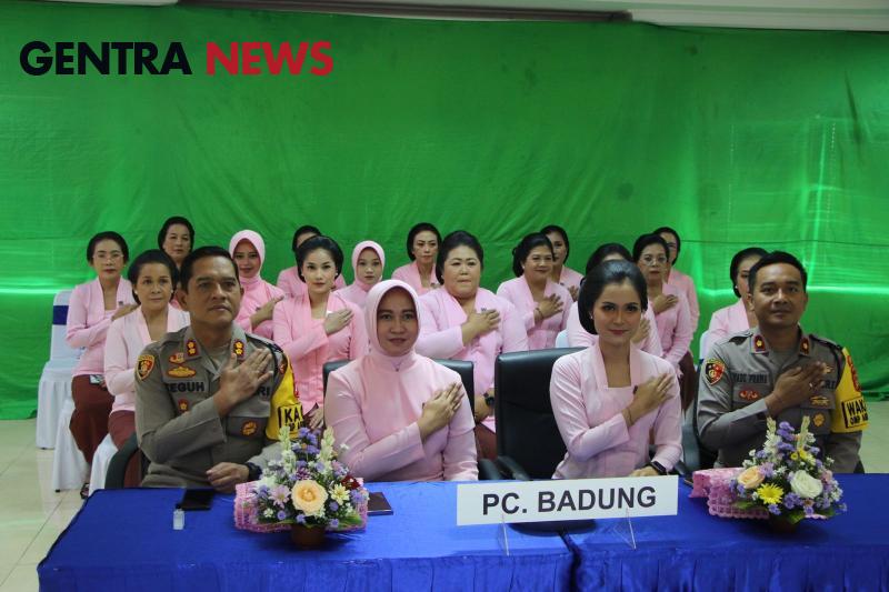 Gentra News Bali – Mangupura – Kapolres Badung AKBP Teguh Priyo Wasono, S.I.K., bersama Ketua Bhayangkari Cabang Badung Ny. Levi Teguh menghadiri Puncak Peringatan