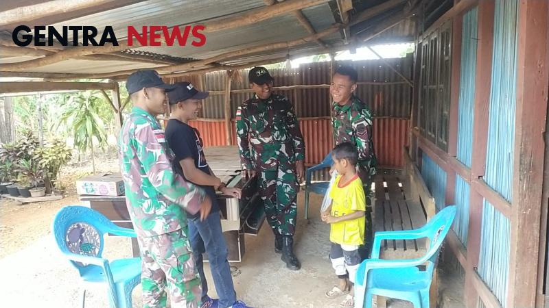 Gentra News Bali – Belu, Satgas Yonif 741/GN Pos Asumanu bersama Komunitas SMGM Youth Lahurus mengadakan bakti sosial memberikan bantuan alat tulis dan makanan