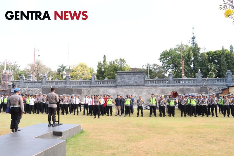 Gentra News Bali – Gianyar, Kapolres Gianyar AKBP Umar, S.I.K., M. H. memimpin apel gelar pasukan dalam rangka pengamanan Pelantikan Presiden dan Wakil Presiden