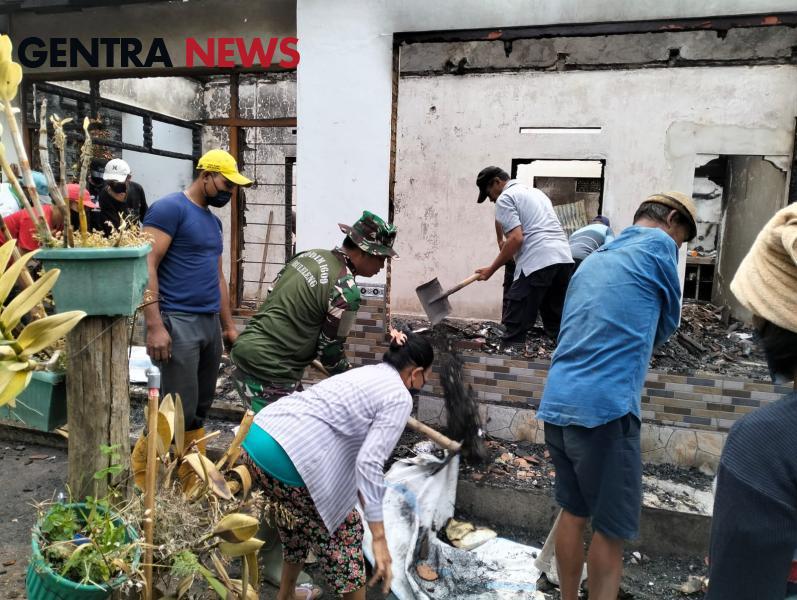 Koramil 1609-03/Seririt Bantu Bersihkan Puing Puing Kebakaran untuk Tingkatkan Kegotong Royongan