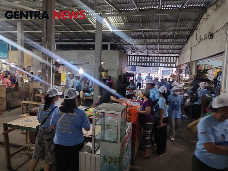 Gentra News Bali – Satgas Operasi Mantap Praja Polda Bali amankan kegiatan kampanye Tim pemenganan Paslon No. urut 1 “Mulia-Pas” blusukan di pasar korinuansa