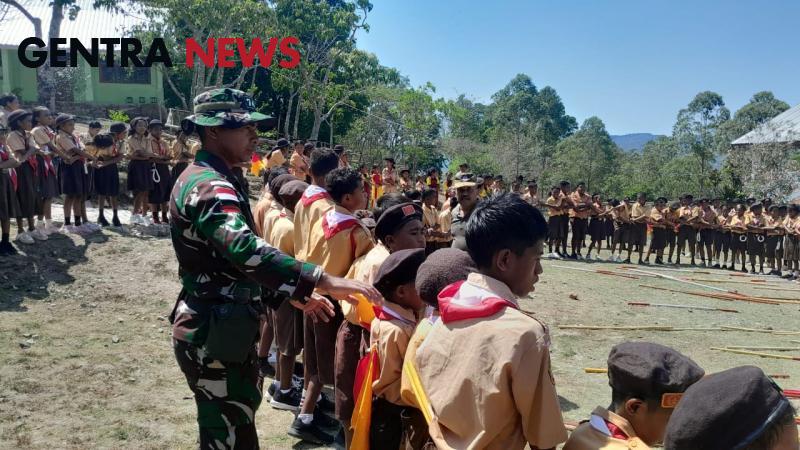 Satgas Yonif 741/Gn Pos Kewar Kolaborasi Dengan Hipakad Berikan Pelatihan Gabungan Pramuka di Sekolah Perbatasan