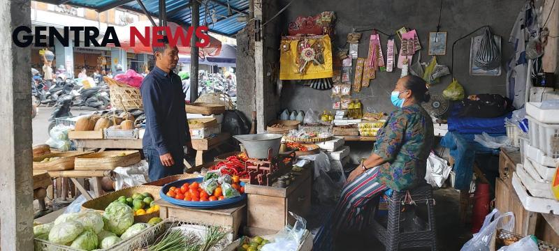 Gentra News Bali – Polda Bali, Polres Bangli, Polsek Bangli, –Dalam upaya monitoring kenaikan harga dan ketersediaan stock sembako di Pasar Kidul, Unit Intelkam