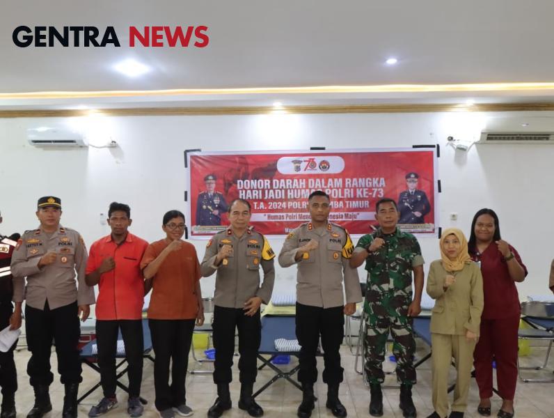 Gentra News Bali – Dalam rangka memperingati Hari Jadi Humas Polri ke-73, Polres Sumba Timur mengadakan kegiatan sosial berupa donor darah yang berlangsung di