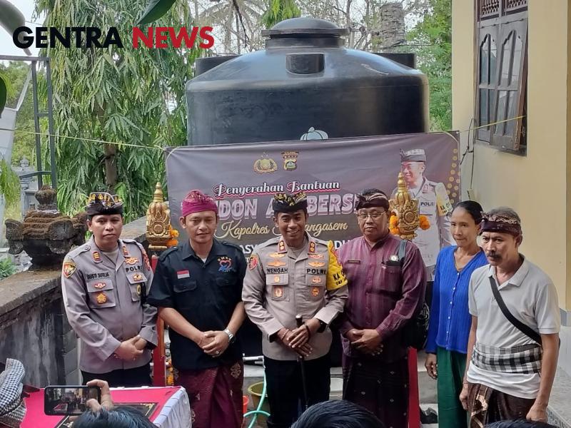 Gentra News Bali – KARANGASEM – Kapolres Karangasem AKBP I Nengah Sadiarta, S.I.K., S.H., M.K.P. menyerahkan bantuan tandon air bersih berkapasitas 5.000 liter kepada
