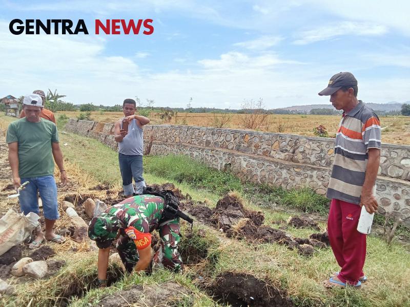 Serda Abdul Hafid Babinsa Naru Barat Hadiri Peletakan Batu Pertama Pembuatan Talut Jalan Usaha Tani.