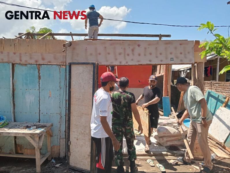 Gentra News Bali – Sumbawa Barat – Anggota Koramil 1628-02/Sekongkang Bersama Warga Gotong Royong Bedah Rumah, Warga yang mendapat bantuan Bedah Rumah Dari Dinas