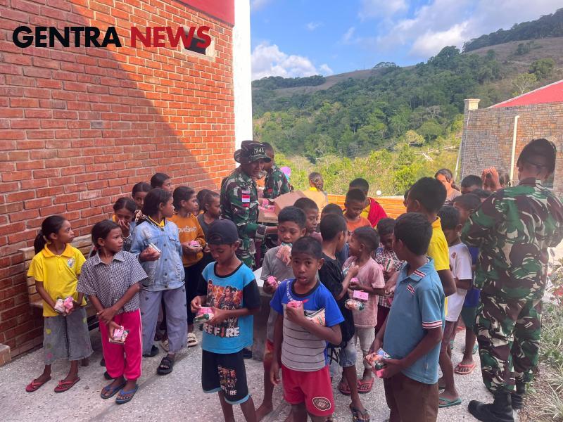 Gentra News Bali – Belu – Satgas Yonif 741/GN Pos laktutus membagikan susu gratis kepada anak-anak fohueka dalam rangka lomba cerdas cermat yang di