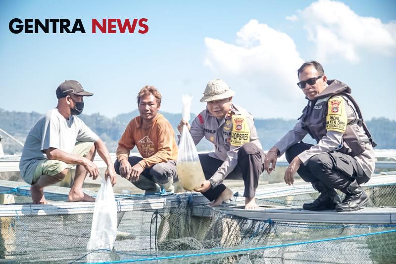 Dukung Ketahanan Pangan, Kapolres Bangli Turun Langsung Tebar Benih Ikan Nila di Danau Batur