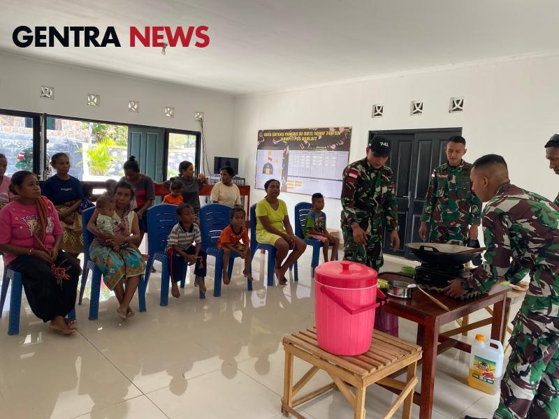 Gentra News NTT – Belu – Upaya untuk membuka lapangan pekerjaan masyrakat perbatasan melalui UMKM, Satgas Yonif 741/GN Pos Asulait perkenalkan cara mengolah pisang