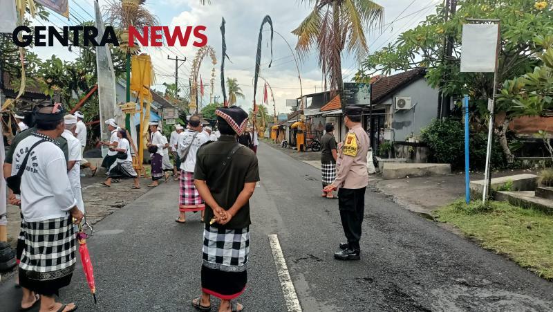 Guna Memperlancar Upacara Mendak Tirta Bhabinkamtibmas Desa Batannyuh Bersinergi Dengan Pecalang Melaksanakan Pengamanan