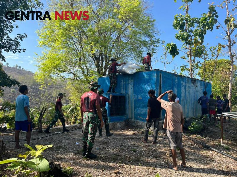 Gentra News NTT – Belu – Peduli dengan masyarakat perbatasan Pos Maubusa Satgas Yonif 741/GN bantu benahi bak penampung air masyrakat Asumanu di dusun