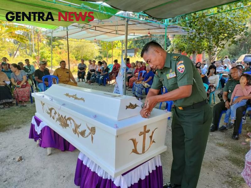 Gentra News NTT – Mewakili Dandim 1601/Sumba Timur Letkol Arh Doman Endro Pramono Kasdim menghadiri pemakaman almarhum Kirenius Toni Ayahanda dari Pratu Irwandi Maksi
