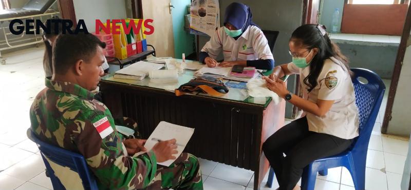 Gentra News NTT – Ende/Kota Baru, Terus memperbaharui data wilayah binaan Babinsa Koramil 04/Maurole Serda La Woe Buton melaksanakan Pul Data Ter di Puskesmas
