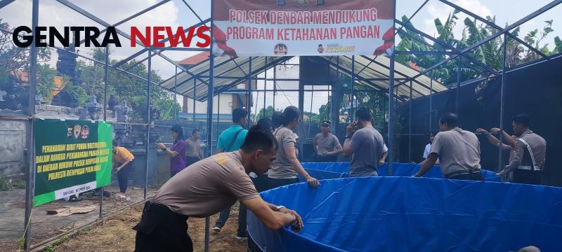 Polsek Denpasar Barat Gelar Kegiatan Penggerak Ketahanan Pangan, Kapolsek Tanam Bibit dan Tebar Benih Ikan Lele