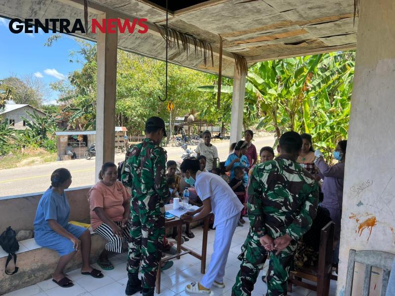 Gentra News Bali – Malaka – Prajurit Pos Auren Satgas Yonif 741/GN bekerja sama dengan Puskesmas Alas laksanakan Posyandu di Dusun Lalebun, Desa Alas