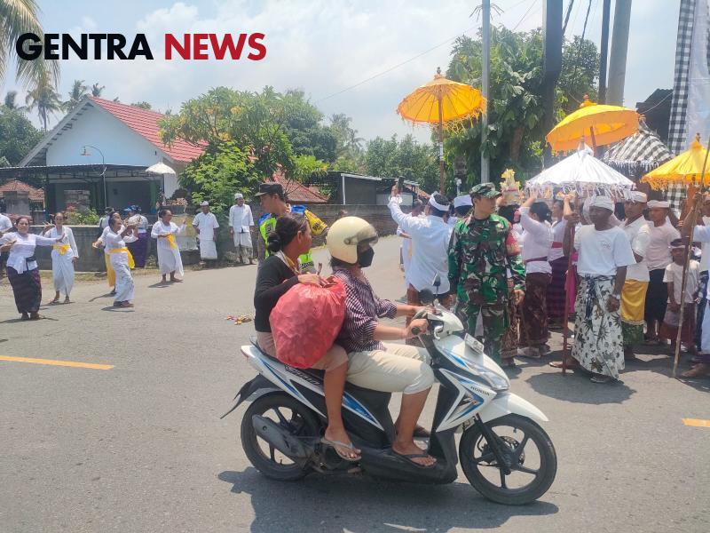 Babinsa Jaga Keamanan Upacara Suci di Pura Luhur Pucak Manik Angkeran