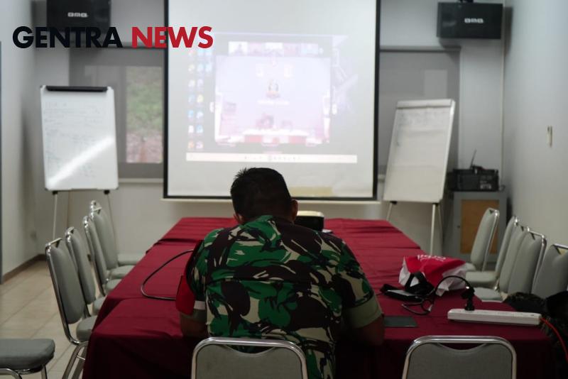 Gentra News NTB – Sumbawa Barat – Dandim 1628/Sumbawa Barat Letkol Inf Andri Karsa S. Sos., M Han. laksanakan Vicon Rapat Teritorial Mingguan Di