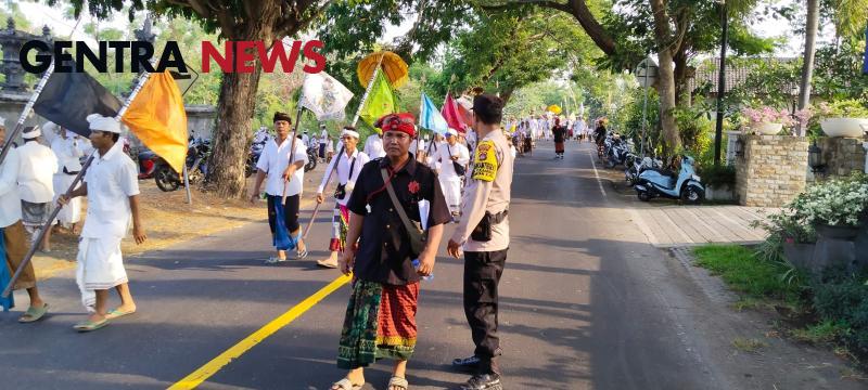 Bhabinkamtibmas Desa Tulamben dan Pecalang Amankan Upacara Melasti Desa Adat Batudawa