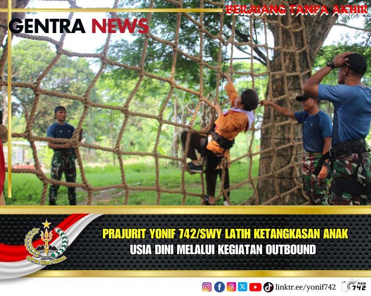 Prajurit Yonif 742/SWY Latih Ketangkasan Anak Usia Dini Melalui Kegiatan Outbound