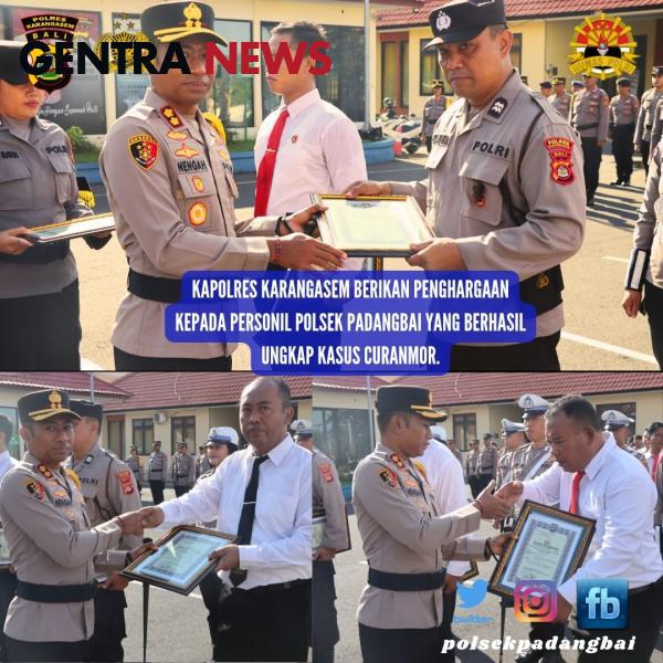 Kapolres Karangasem Berikan Penghargaan kepada Personil Polsek Padangbai yang Berhasil Ungkap Kasus Curanmor