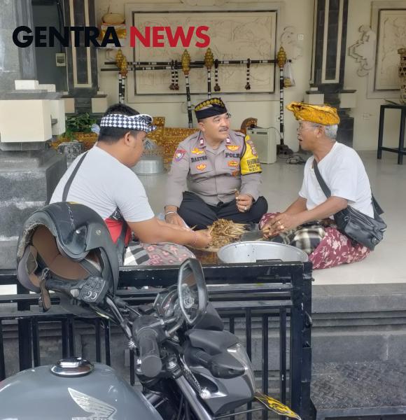 Gentra News Bali – SUKAWATI – Bertempat di Pura Puseh Banjar Sumampan Bhabinkamtibmas Desa Kemenuh Bripka I Ketut Suparga bersama Bhabinsa I Gede Jayasa