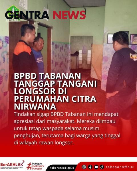Tabanan, Selasa (19/11) – Hujan deras yang mengguyur wilayah Tabanan pada Selasa sore mengakibatkan tanah longsor di Perumahan Citra Nirwana Regency II Blok C